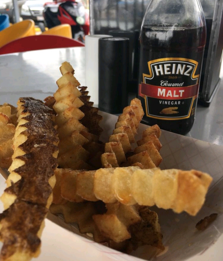 Very rare, actually never seen before in public, an extraordinary large hand cut skin on crinkle cut french fry that you will never forget. A special blade has been manufactured just for these fries. Our potatoes are cooked in 100% peanut oil.
